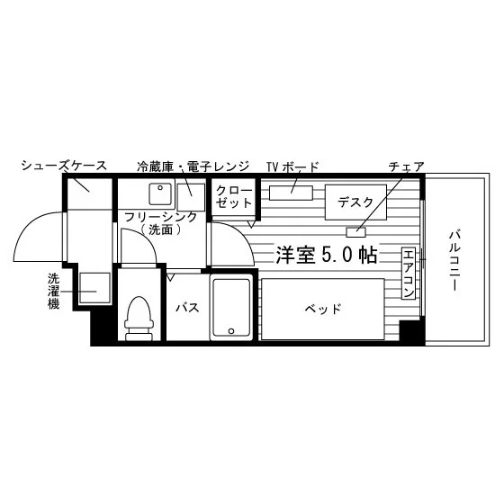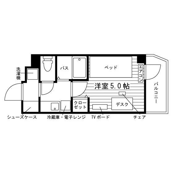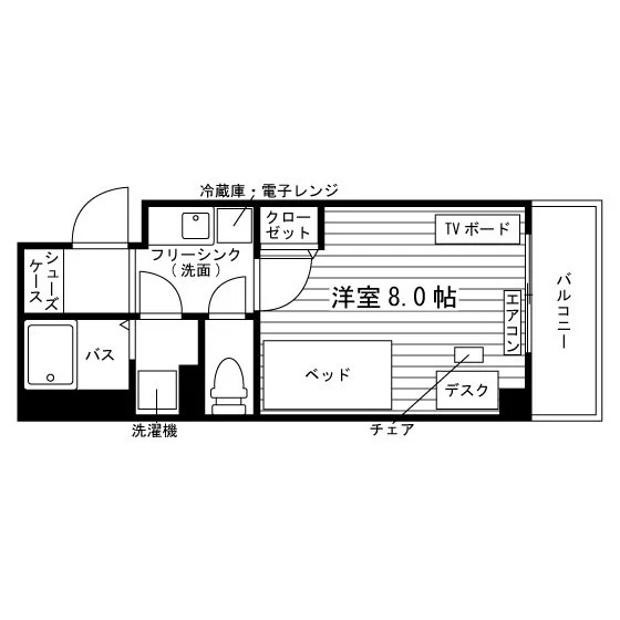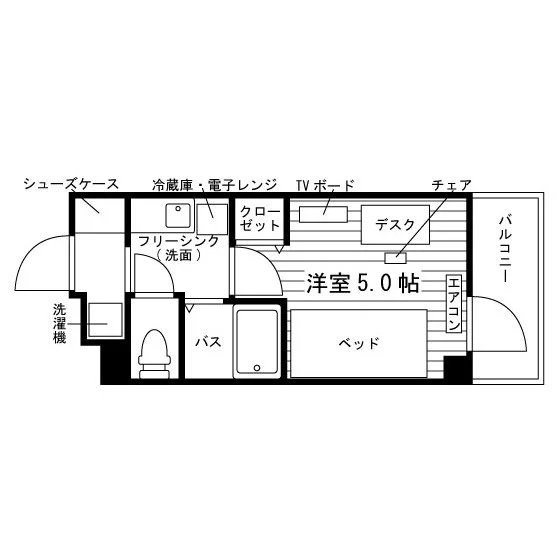 当学生会館の居室には、予め全室に家具家電が備え付けられています。