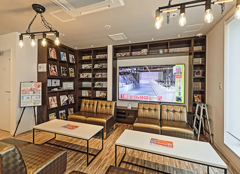 コミック・雑誌・文庫本・ビジネス書等約500冊設置。こちらは定期的に入れ替えを行いますので、飽きずに楽しめますよ♪