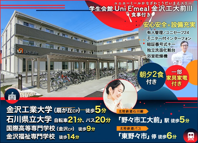 logo ガクセイカイカンユニエミールカナザワコウダイマエスリー 学生会館 Uni E’meal 金沢工大前Ⅲ【食事付き】