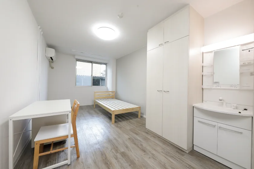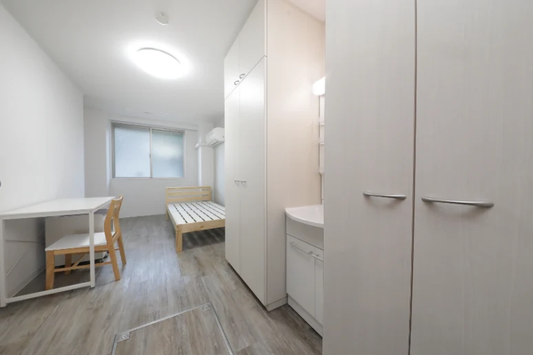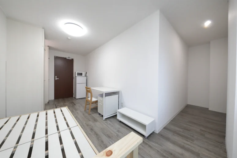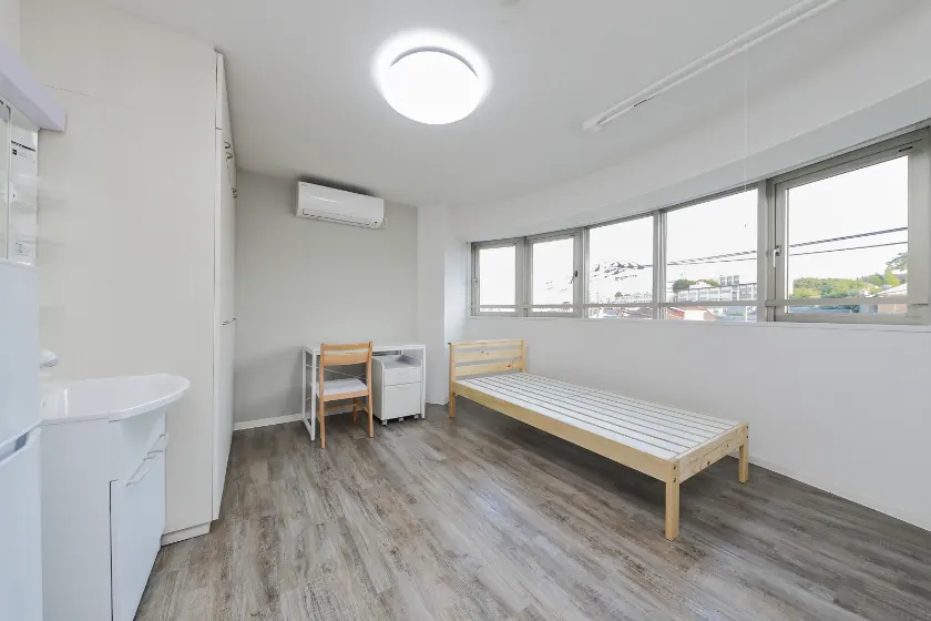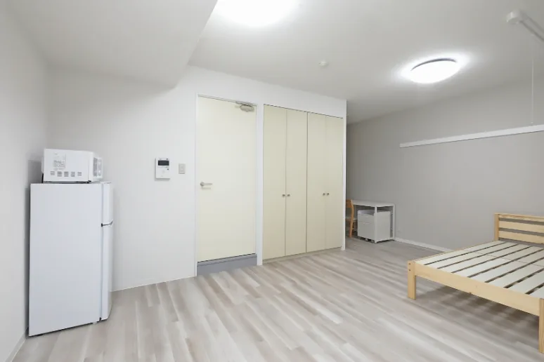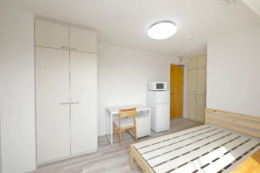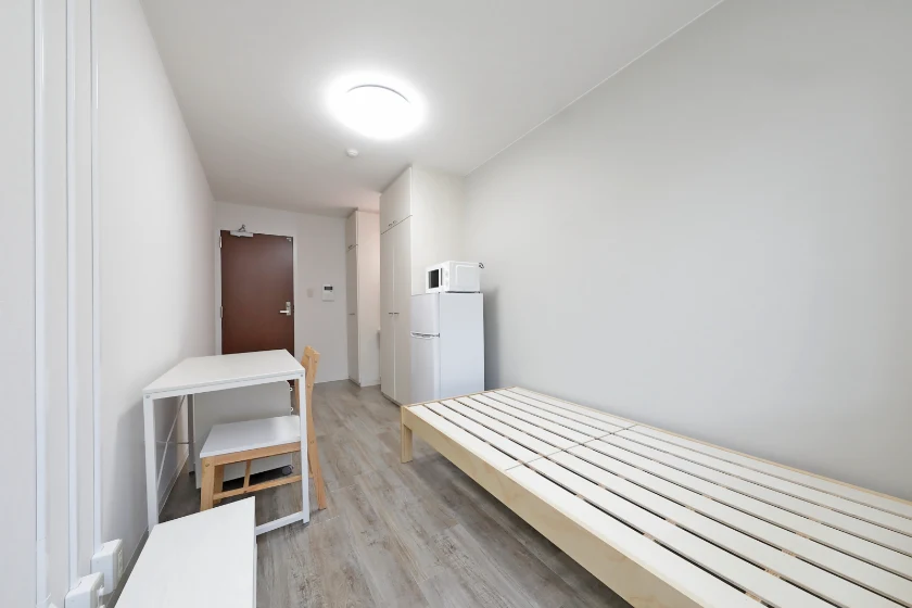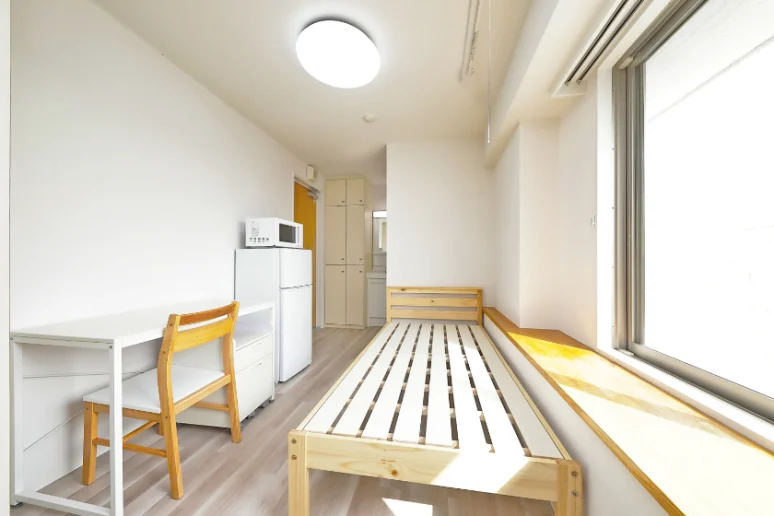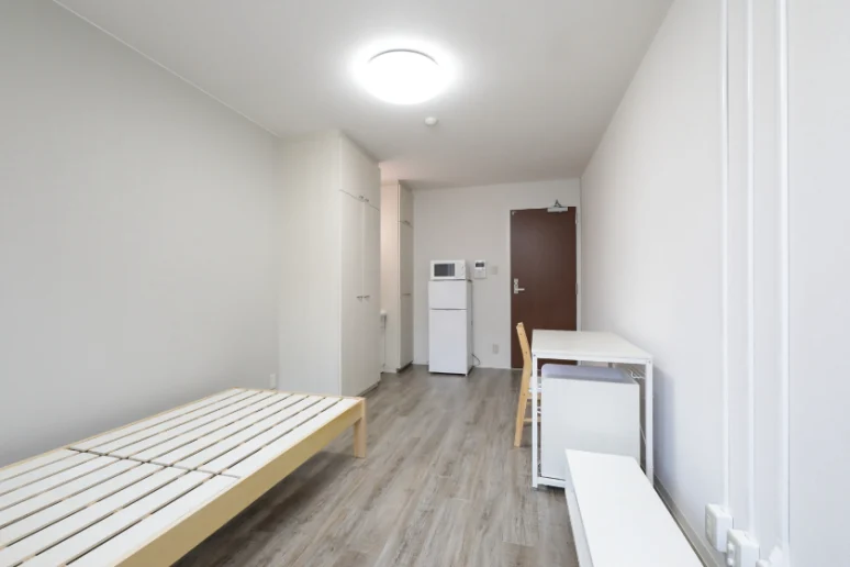 当学生会館の居室には、予め全室に家具家電が備え付けられています。