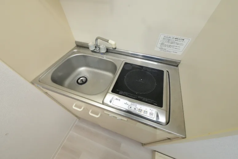 冷蔵庫、電子レンジ、照明器具が付いています。