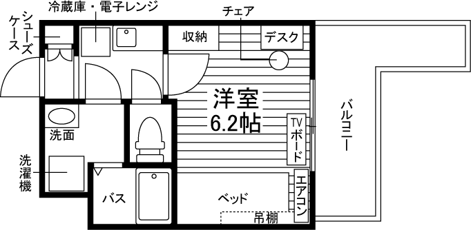 1K/19.2m²/6.1帖~6.2帖 |