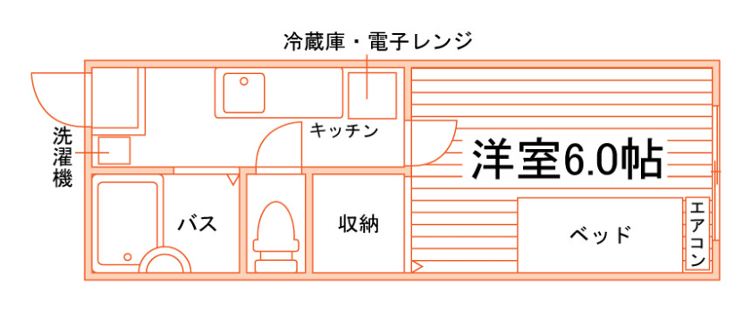 セパレート(バス・トイレ)/洗濯機/温水洗浄便座/ガスコンロ(持込)/家具家電付/冷蔵庫/電子レンジ/ベッド/フローリング/バルコニー/防犯シャッター/収納/インターフォン(TVモニター付)/エアコン/個別給湯(ガス)