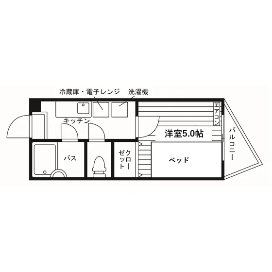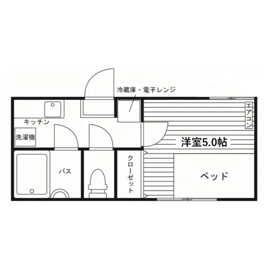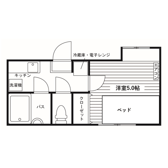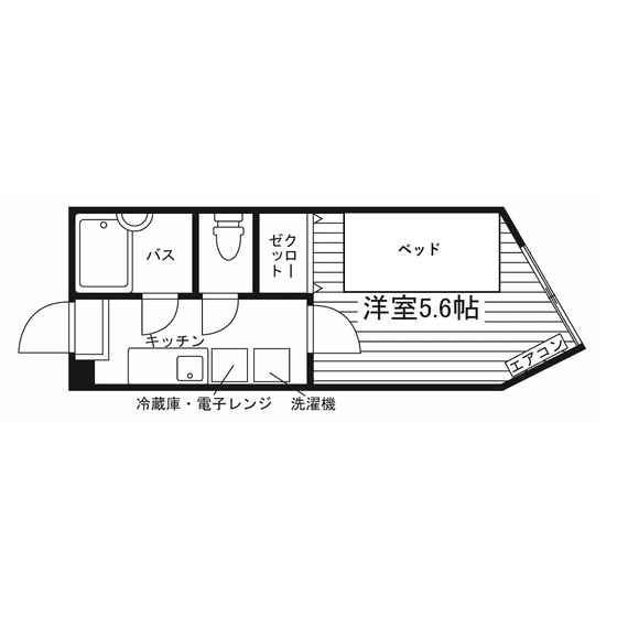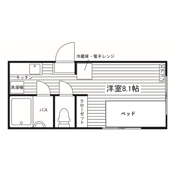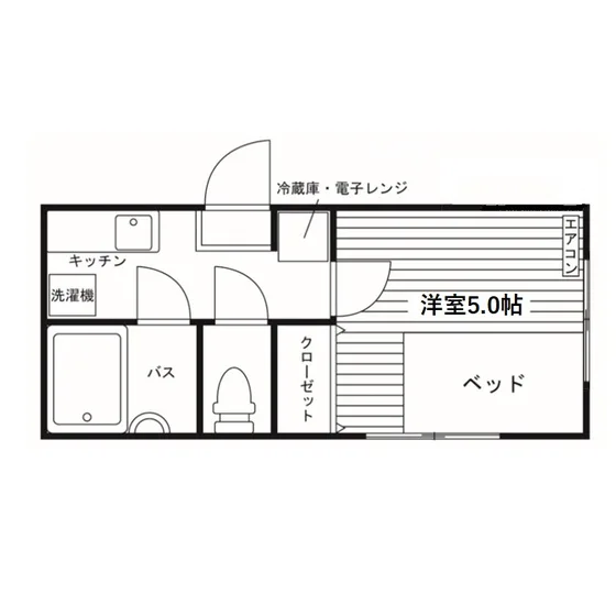 セパレート(バス・トイレ)/洗濯機置場(室内)/室内物干/温水洗浄便座/ガスコンロ(持込)/家具家電付/居室照明器具/フローリング/収納/エアコン/個別給湯(ガス) |