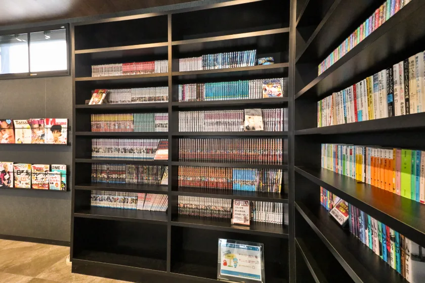 コミック・雑誌・文庫本・ビジネス書等も約500冊設置。こちらは定期的に入れ替えを行いますので、飽きずに楽しめますよ♪