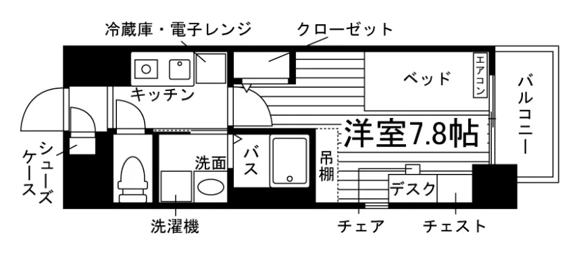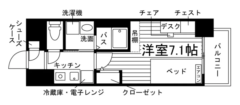 45,500円家具家電付き | 2026年1月中旬 | 1K (24.4m²) |