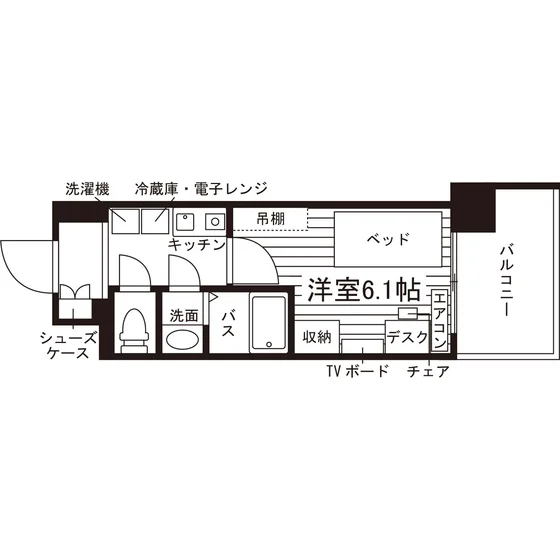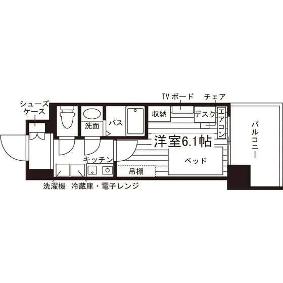セパレート(バス・トイレ)/独立洗面化粧台/洗濯機置場(室内)/洗濯機/浴室乾燥機/温水洗浄便座/IHコンロ(1口)/家具家電付/冷蔵庫(2ドア)/玄関センサー感知ライト/居室照明器具/電子レンジ/ベッド/バルコニー/フローリング/シューズケース/収納/吊棚/WINクローゼット(一部)/インターフォン(TVモニター付)/暗証番号式キー/エアコン |