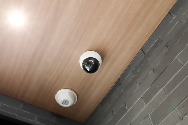 館内で異常を発見した際、共用部の非常ボタンを押すことでベルが鳴動し異常を通報。ALSOKまたはSECOM管制センターにてカメラ画像や音声通話で状況を確認、必要時はガードマンが24時間体制で現地に駆け付けます。