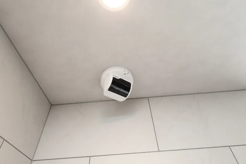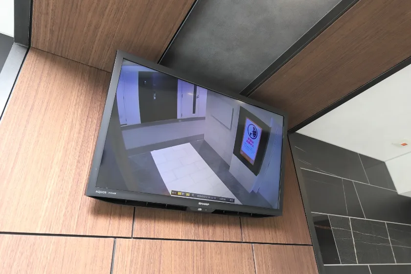 館内で異常を発見した際、共用部の非常ボタンを押すことでベルが鳴動し異常を通報。ALSOKまたはSECOM管制センターにてカメラ画像や音声通話で状況を確認、必要時はガードマンが24時間体制で現地に駆け付けます。