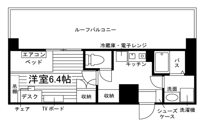 セパレート(バス・トイレ)/独立洗面化粧台/洗濯機/浴室乾燥機/温水洗浄便座/IHコンロ/家具家電付/冷蔵庫(2ドア)/居室照明器具/電子レンジ/ベッド/バルコニー/シューズケース/吊棚/収納/インターフォン(TVモニター付)/防犯ディンプルキー/エアコン/個別給湯(電気)/個別給湯(ガス) |