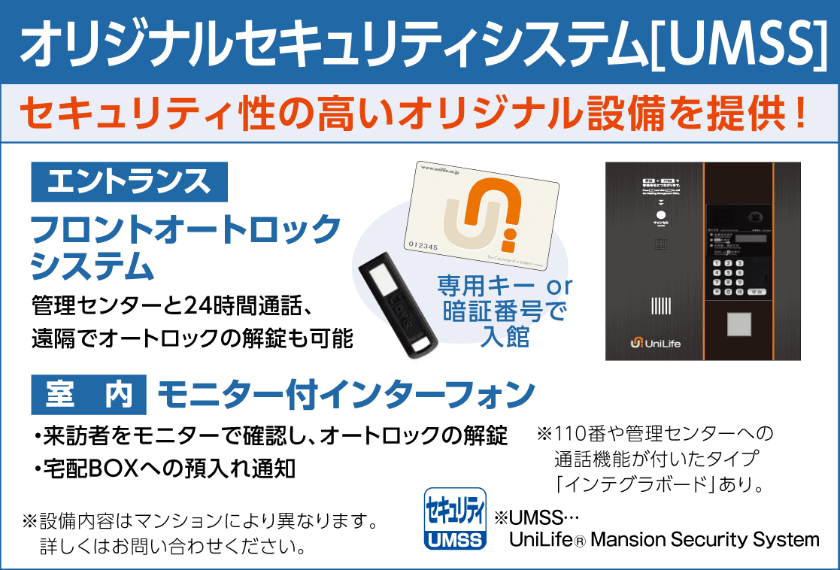 都市ガス/BS・CSアンテナ/UniLife-net光(J-FLASH) Wi-Fi対応/インターネット対応(無料)/インターネット対応/オートロック/防犯カメラ(ユニセーフ24仕様)/エレベーター/宅配BOX/駐輪場(自転車のみ)/食堂(UniTimeKitchen仕様)/ユニタイムラウンジ |