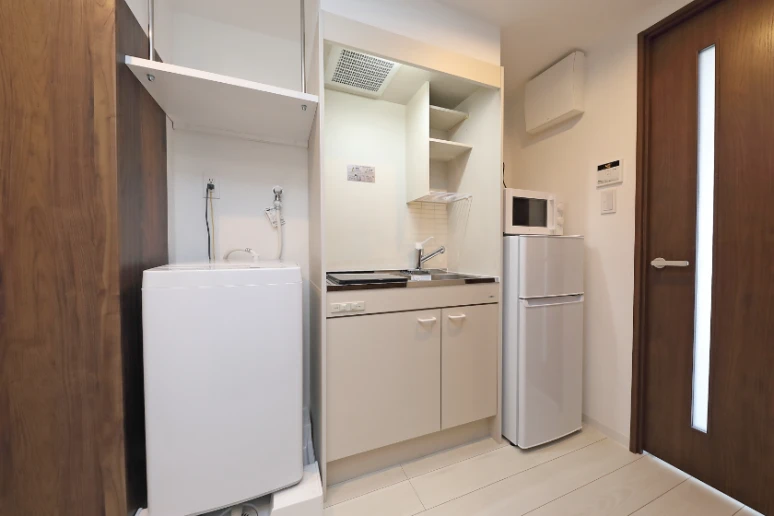 独立洗面化粧台/セパレート(バス・トイレ)/洗濯機置場(室内)/洗濯機/温水洗浄便座/IHコンロ(1口)/家具家電付/冷蔵庫(2ドア)/玄関センサー感知ライト/居室照明器具/ベッド/電子レンジ/バルコニー/フローリング/シューズケース/吊棚/収納/インターフォン(TVモニター付)/暗証番号式キー/エアコン/個別給湯(ガス) |