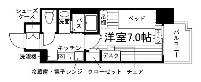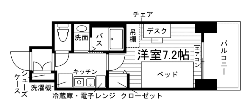 当学生会館は、あらかじめ全室に家具家電が備え付けられています。