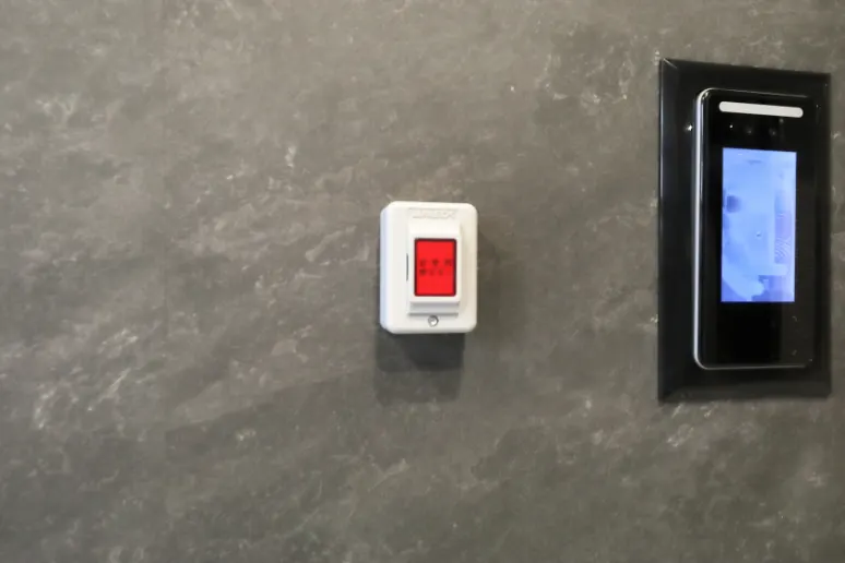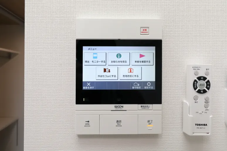 共用部の非常ボタンを押すことでベルが鳴動し異常を通報。ALSOKまたは、SECOMの管制センターにてカメラ画像や音声通話で状況を確認、必要時はガードマンが24時間体制で現地に駆け付けます。