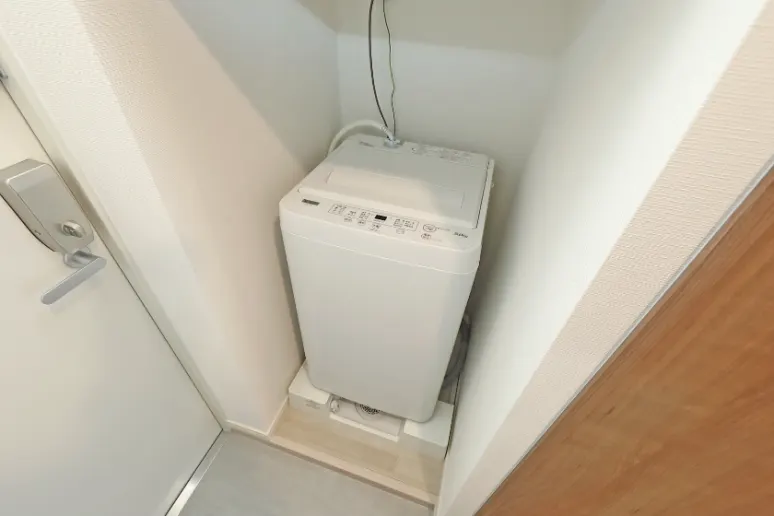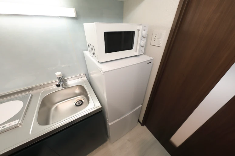 洗濯機、冷蔵庫、電子レンジ、照明器具が付いています。