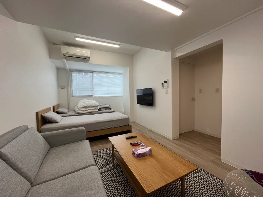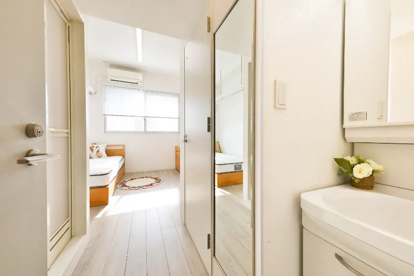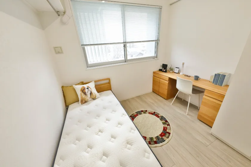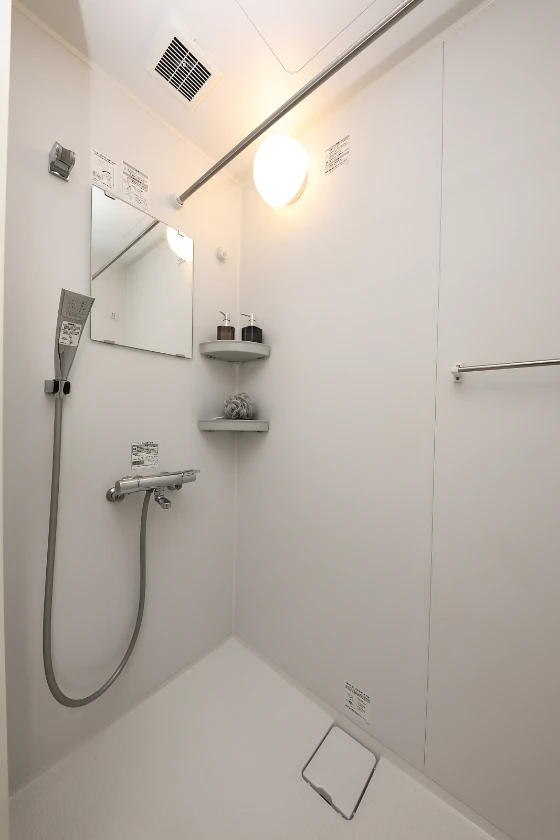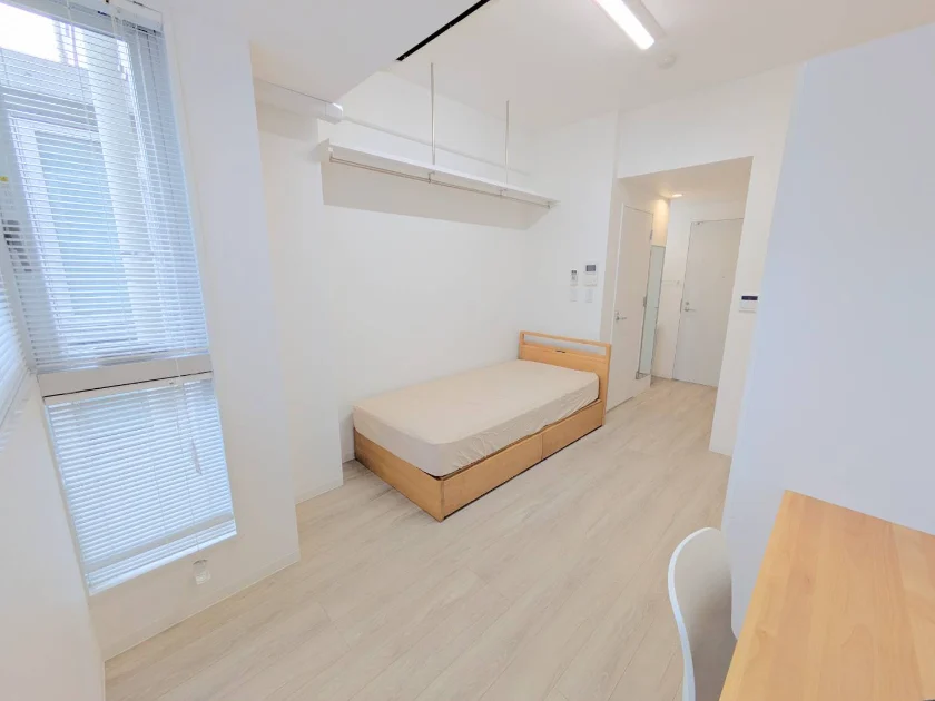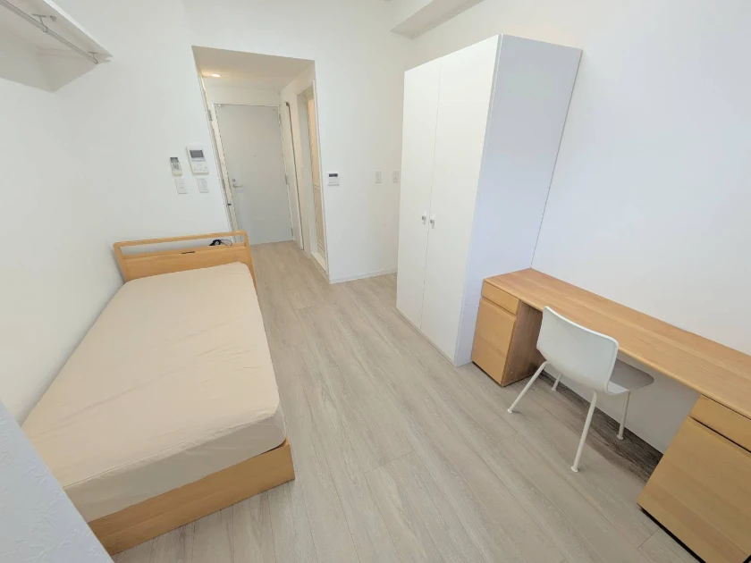 シャワールーム(専有部)/セパレート(バス・トイレ)/独立洗面化粧台/温水洗浄便座/家具家電付/冷蔵庫(2ドア)/居室照明器具/電子レンジ/ベッド/フローリング/収納/シューズケース/吊棚/インターフォン(TVモニター付)/エアコン |