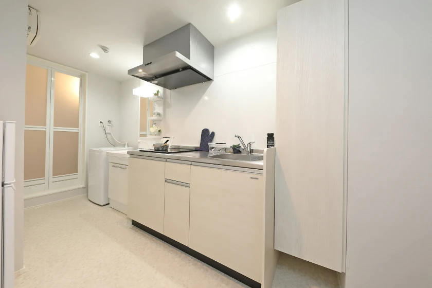 セパレート(バス・トイレ)/独立洗面化粧台/室内物干/洗濯機置場(室内)/浴室乾燥機/追焚き機能付バス/温水洗浄便座/IHコンロ(2口)/家具家電付(一部)/玄関センサー感知ライト/居室照明器具/バルコニー/防犯シャッター/シューズケース/吊棚/収納/インターフォン(TVモニター付)/ダブルロックキー/エアコン/個別給湯(ガス) |