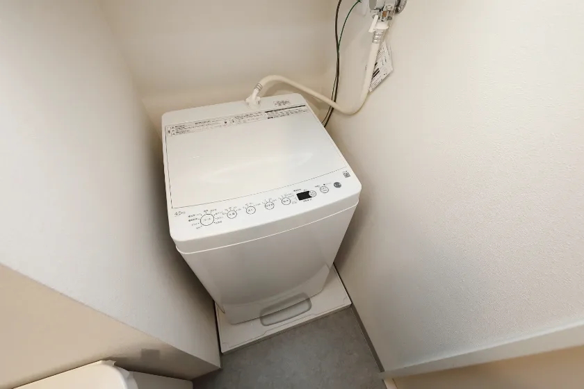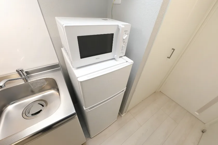 洗濯機、冷蔵庫、電子レンジ、照明器具が付いています。