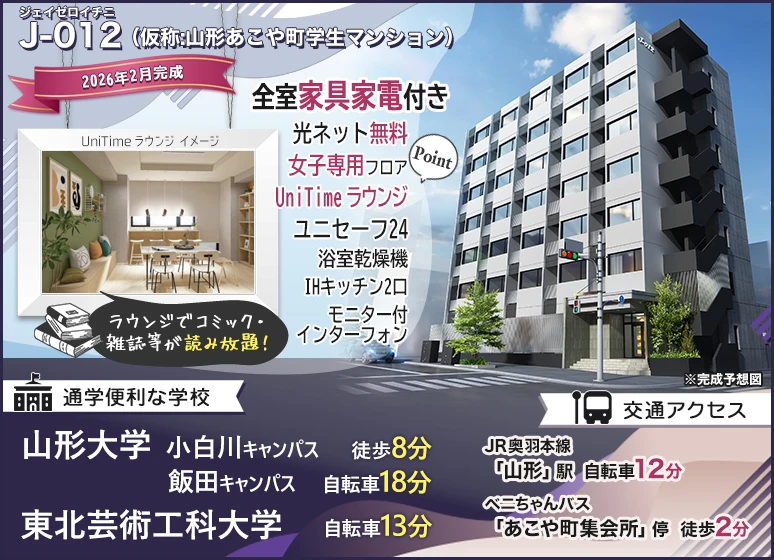 | 備考 | 1~6F:学生専用フロア、7F:学生優先フロア[社会人入居可] (仮称:山形あこや町学生マンション) |