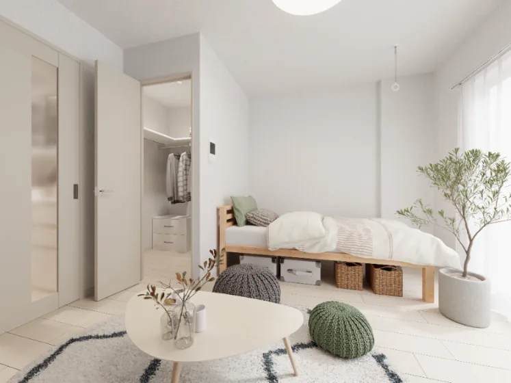 当学生マンションの一部の居室(※)には、あらかじめ家具家電が備え付けられています。