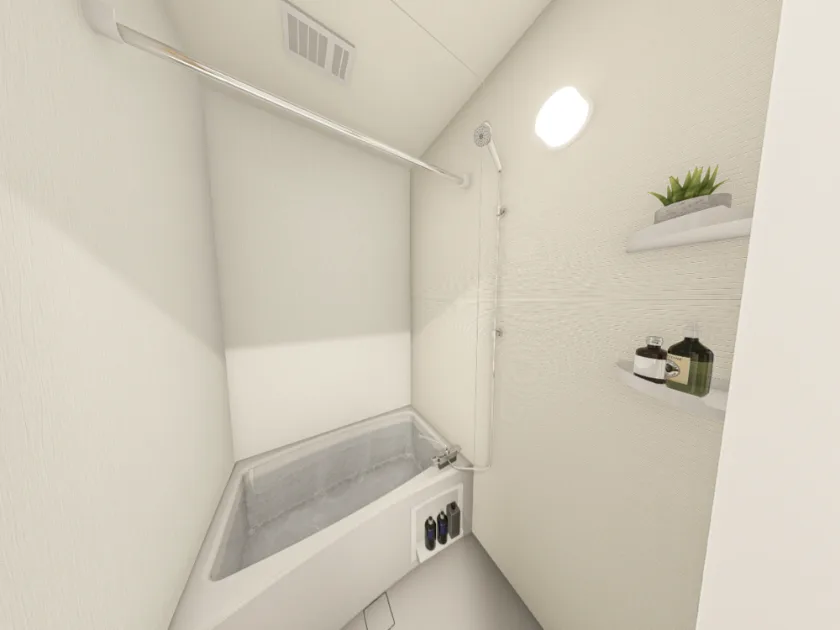 セパレート(バス・トイレ)/独立洗面化粧台/洗濯機/温水洗浄便座/IHコンロ(1口)/家具家電付/冷蔵庫/居室照明器具/電子レンジ/ベッド/バルコニー/吊棚/収納/シューズケース/インターフォン(TVモニター付)/暗証番号式キー/エアコン/個別給湯(ガス) |