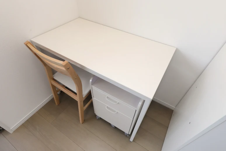 ベッド、デスク&ワゴン、チェアが付いています。