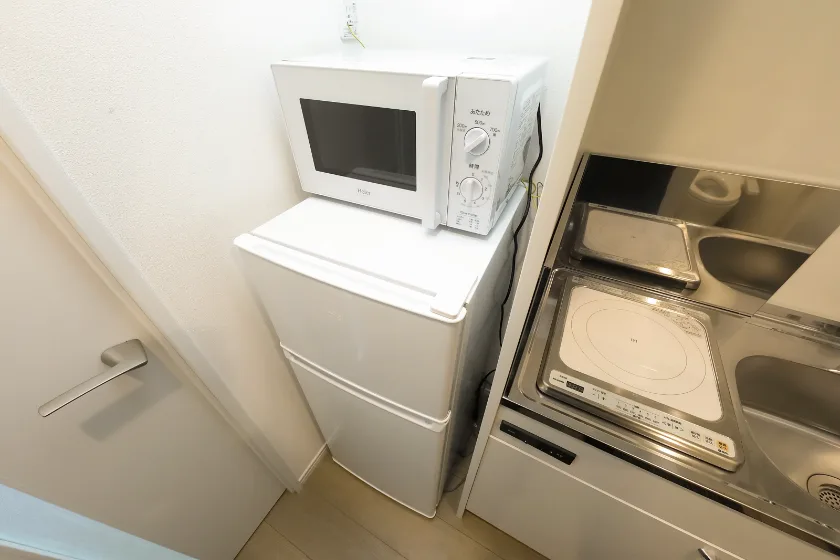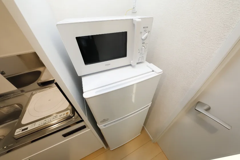 洗濯機、冷蔵庫、電子レンジ、照明器具が付いています。