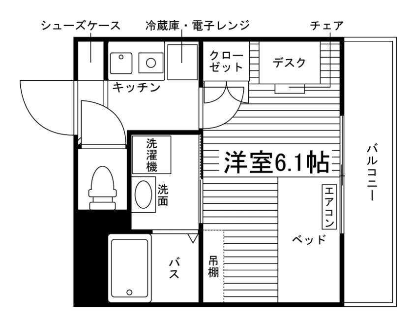 1K/18.9m²/6.1帖 |