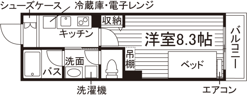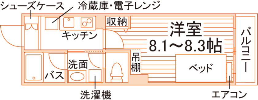1K/25.7m²~26.2m²/8.1帖~8.3帖 |