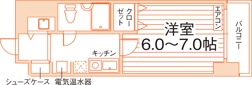 1K/19.6m²~22.8m²/6帖~7帖 |