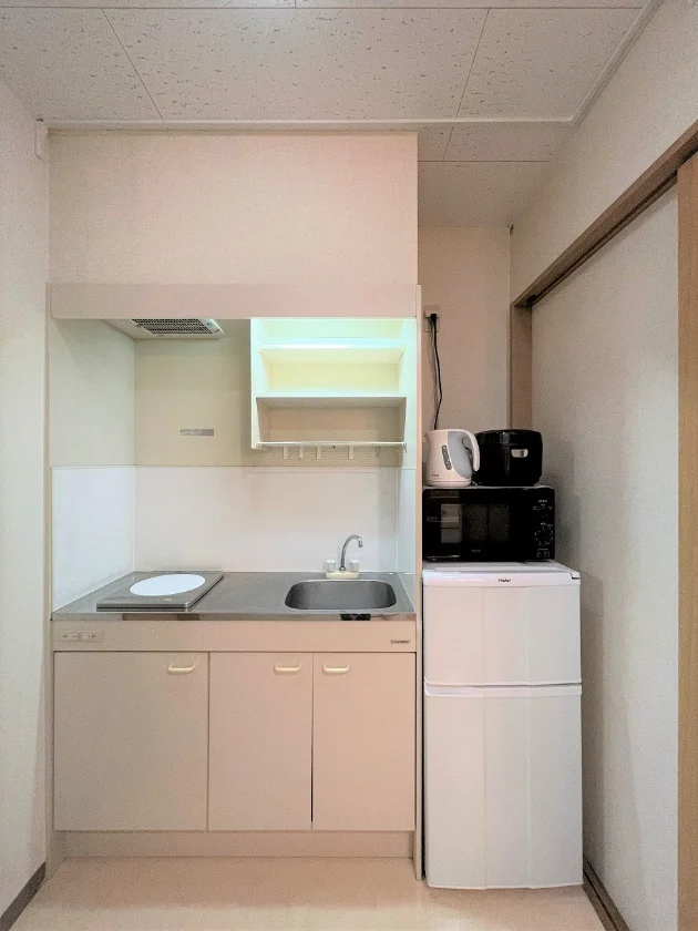 セパレート(バス・トイレ)/独立洗面化粧台/洗濯機/暖房便座/IHコンロ(1口)/家具家電付/冷蔵庫(2ドア)/居室照明器具/ベッド/フローリング/小窓(出窓)/収納/シューズケース/インターフォン(TVモニター付)/エアコン/蓄熱式電気暖房機/個別給湯(電気)/オール電化(ガス無し)/個別給湯(電気温水器) |