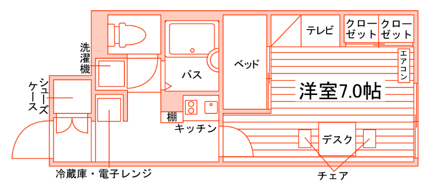 セパレート(バス・トイレ)/洗濯機/浴室乾燥機/温水洗浄便座/IHコンロ(2口)/冷蔵庫(2ドア)/居室照明器具/フローリング/収納/シューズケース/インターフォン(TVモニター付)/エアコン |