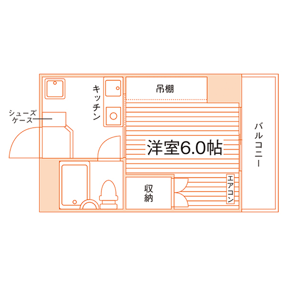 1K/20.7m²/6帖 |
