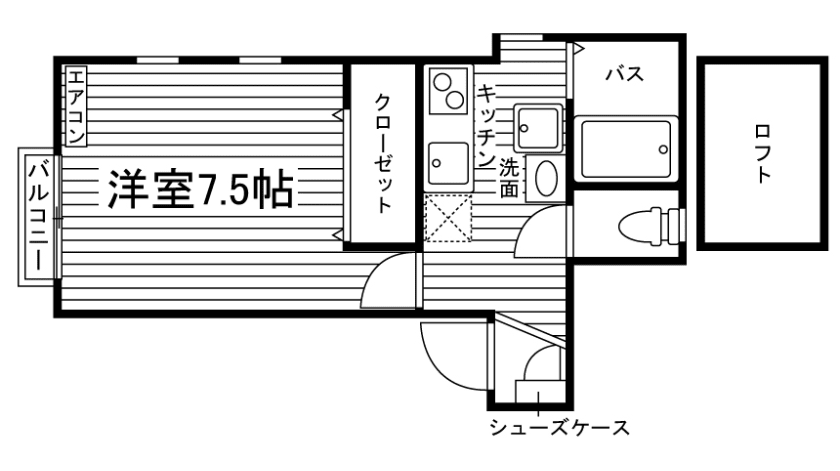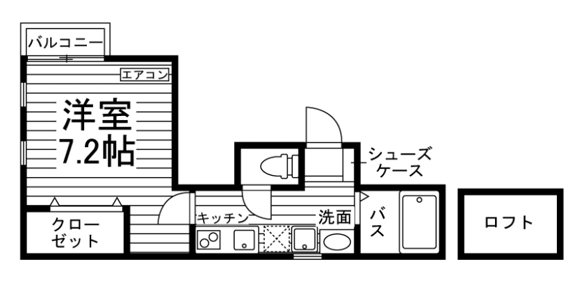 セパレート(バス・トイレ)/独立洗面化粧台/洗濯機置場(室内)/温水洗浄便座/ガスコンロ(2口)/居室照明器具/フローリング/ロフト/バルコニー/収納/シューズケース/インターフォン(TVモニター付)/カードキー/エアコン |