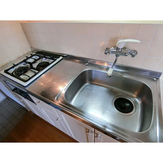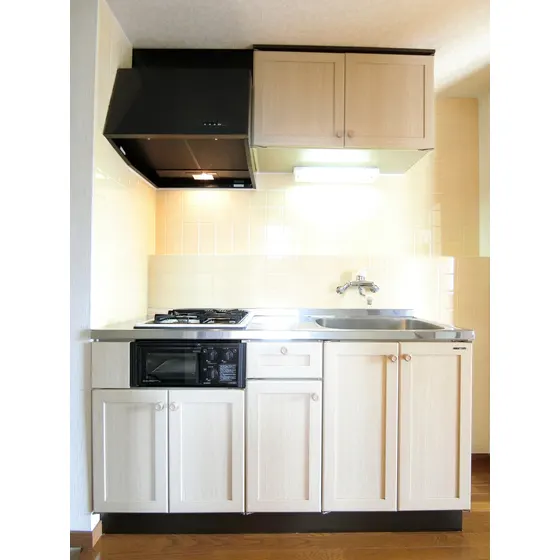 システムキッチン(2口ガスコンロ)付きでお料理も快適♪