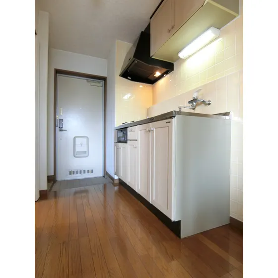 セパレート(バス・トイレ)/独立洗面化粧台/洗濯機置場(室内)/温水洗浄便座/ガスコンロ(2口)/システムキッチン/居室照明器具/バルコニー/フローリング/シューズケース/収納/インターフォン(TVモニター付)/エアコン/個別給湯(ガス) |