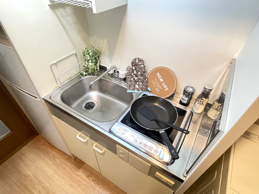 セパレート(バス・トイレ)/洗濯機置場(室内)/温水洗浄便座/IHコンロ(1口)/家具家電付(一部)/玄関センサー感知ライト/居室照明器具/バルコニー/フローリング/シューズケース/吊棚/収納/インターフォン(TVモニター付)/防犯ディンプルキー/エアコン/個別給湯(ガス) |