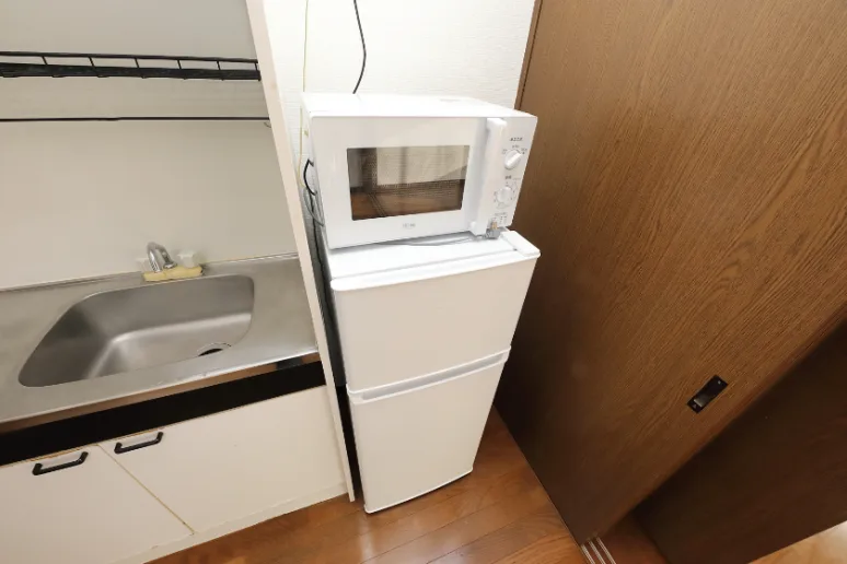 独立洗面化粧台/セパレート(バス・トイレ)/洗濯機/洗濯機置場(室内)/ガスコンロ(1口)/家具家電付/冷蔵庫(2ドア)/玄関センサー感知ライト/居室照明器具/バルコニー/フローリング/収納/シューズケース/吊棚/インターフォン/暗証番号式キー/エアコン/個別給湯(ガス) |