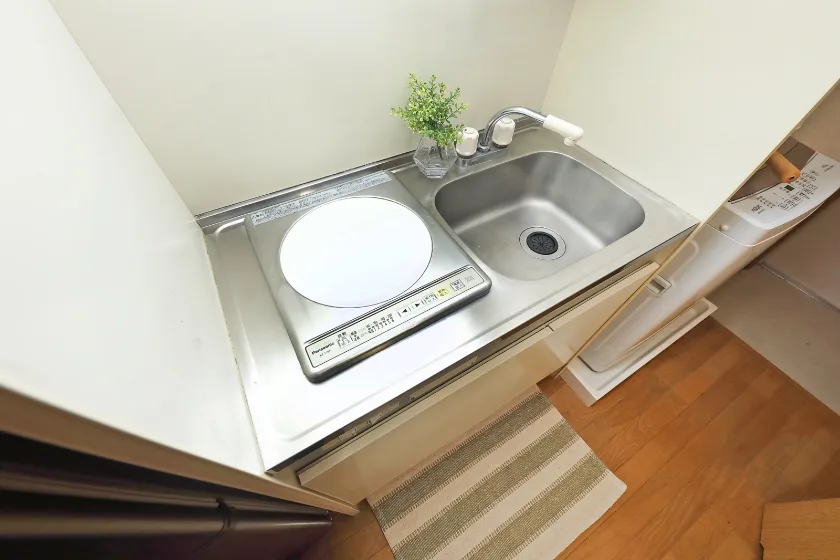 独立洗面化粧台/セパレート(バス・トイレ)/洗濯機置場(室内)/洗濯機/温水洗浄便座/IHコンロ(1口)/家具家電付/冷蔵庫(2ドア)/居室照明器具/玄関センサー感知ライト/電子レンジ/ベッド/バルコニー/フローリング/収納/シューズケース/吊棚/インターフォン(TVモニター付)/エアコン/個別給湯(ガス) |