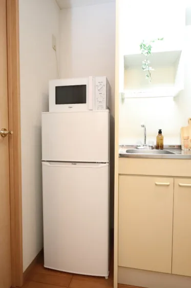 セパレート(バス・トイレ)/洗濯機/洗濯機置場(室内)/温水洗浄便座/RHコンロ(2口)/家具家電付/冷蔵庫(2ドア)/玄関センサー感知ライト/居室照明器具/バルコニー/フローリング/収納/シューズケース/インターフォン(TVモニター付)/防犯ディンプルキー/エアコン |