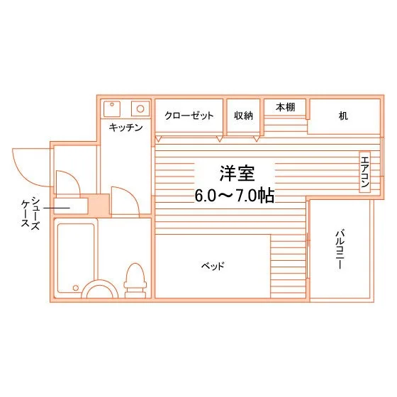 ユニットバス/RHコンロ(1口)/冷蔵庫(1ドア)/居室照明器具/ベッド/バルコニー/収納/シューズケース/インターフォン(TVモニター付)/エアコン |