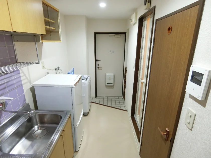 セパレート(バス・トイレ)/洗濯機/温水洗浄便座/ガスコンロ(2口)/冷蔵庫(2ドア)/居室照明器具/フローリング/バルコニー/収納/シューズケース/インターフォン(TVモニター付)/エアコン |