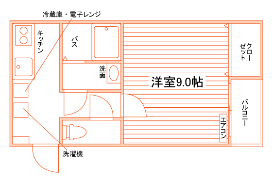 セパレート(バス・トイレ)/洗濯機置場(室内)/温水洗浄便座/ガスコンロ(1口)/冷蔵庫/バルコニー/フローリング/ロフト/収納/インターフォン(TVモニター付)/エアコン/個別給湯(ガス) |