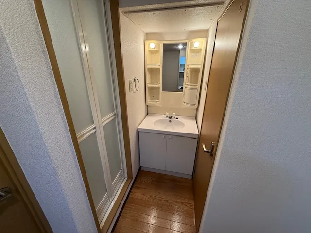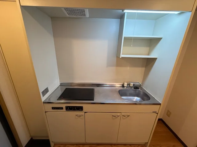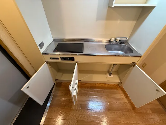 セパレート(バス・トイレ)/独立洗面化粧台/洗濯機置場(室内)/RHコンロ(2口)/フローリング/バルコニー/収納/シューズケース/インターフォン/エアコン/オール電化(ガス無し)/個別給湯(電気温水器) |