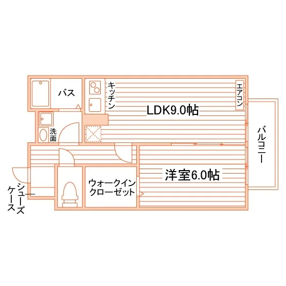 セパレート(バス・トイレ)/独立洗面化粧台/洗濯機置場(室内)/温水洗浄便座/浴室乾燥機/ガスコンロ(2口)/バルコニー/フローリング/収納/シューズケース/WINクローゼット/インターフォン(TVモニター付)/エアコン |