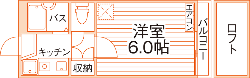 1K/17.95m²/6帖 |