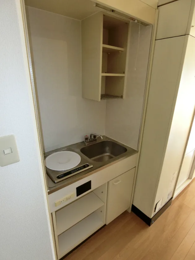 セパレート(バス・トイレ)/洗濯機/洗濯機置場(室外)/IHコンロ(1口)/家具家電付/冷蔵庫/居室照明器具/電子レンジ/ベッド/フローリング/バルコニー/収納/インターフォン/エアコン |