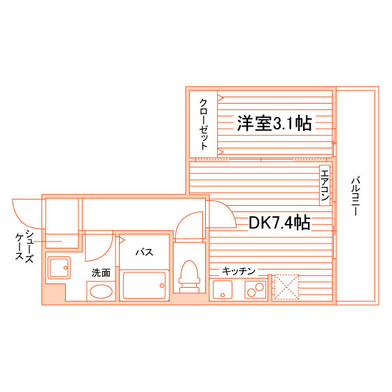 1K~1DK/26.71m²~30.35m²/7.1帖~7.4帖 |