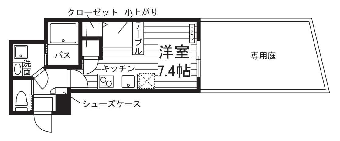 独立洗面化粧台/セパレート(バス・トイレ)/洗濯機置場(室内)/温水洗浄便座/浴室乾燥機/追焚き機能付バス/IHコンロ(2口)/専用庭/小窓(出窓)/バルコニー/ロフト/防犯シャッター/収納/シューズケース/インターフォン(TVモニター付)/ダブルロックキー/防犯ディンプルキー/エアコン/個別給湯(ガス) |
