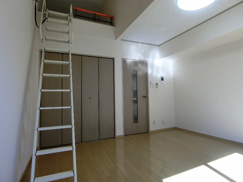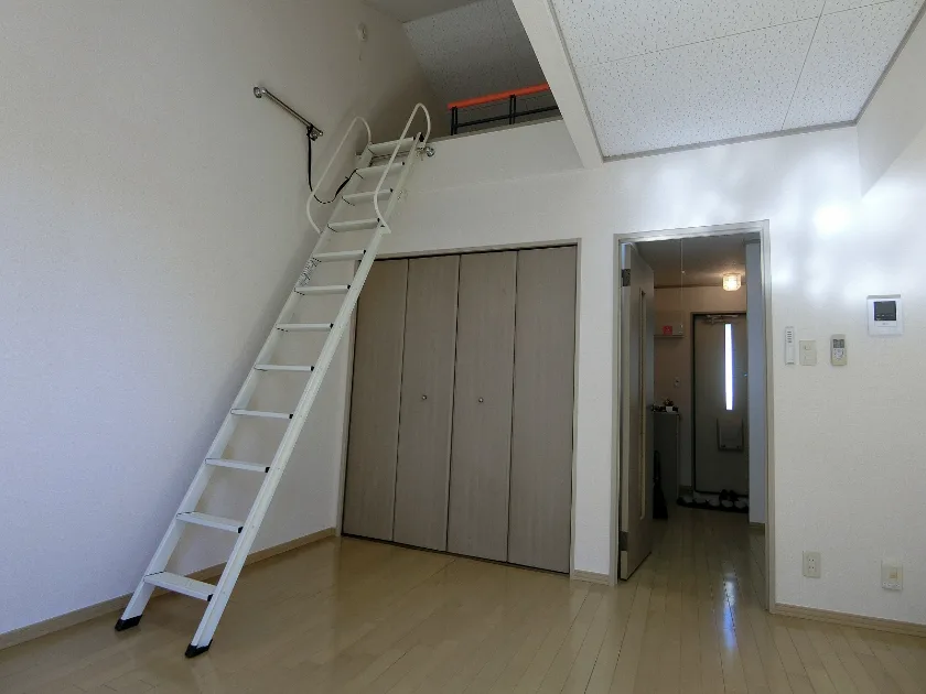 独立洗面化粧台/セパレート(バス・トイレ)/洗濯機置場(室内)/温水洗浄便座/ガスコンロ(1口)/居室照明器具/バルコニー/フローリング/ロフト/シューズケース/収納/インターフォン(TVモニター付)/暗証番号式キー/エアコン/個別給湯(ガス) |
